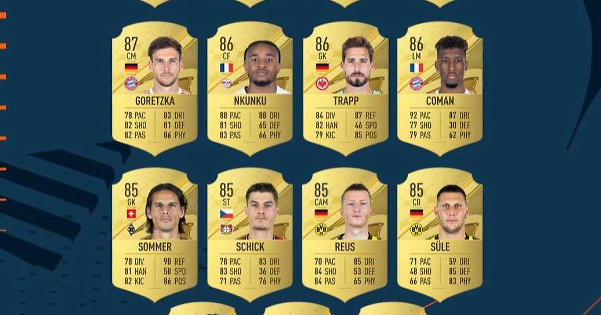 8 игроков Баварии, 2 игрока Боруссии Д, 2 игрока Лейпцига, по 1 игроку - Айнтрахт Ф, Боруссия М, Байер.