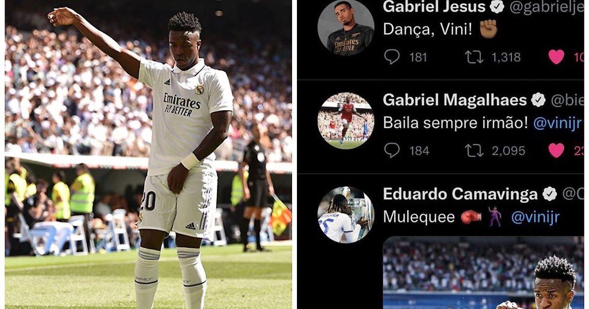 Пользователи используют хэштег, чтобы поддержать Винисиуса и выступить против расизма.