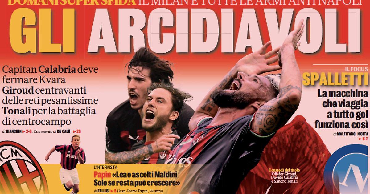 Завтра супер-схватка, «Милан» и все его оружия против «Наполи». Капитан Калабрия должен остановить Квару. Жиру – центральный нападающий с самыми весомыми голами. Тонали для битвы в центре поля.