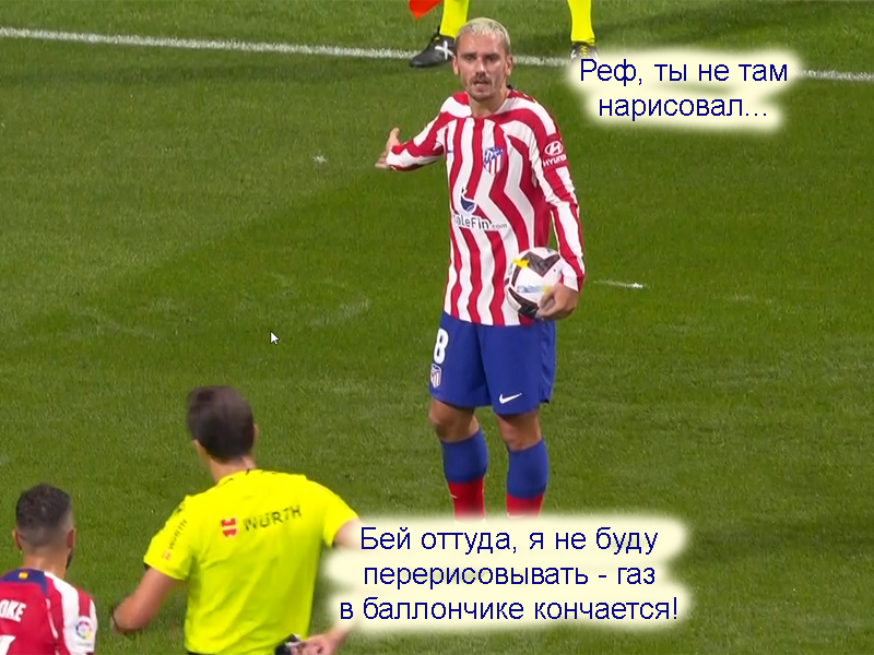 В воскресенье, впрочем, «Бетис» хоть и не без труда, но сместил баскский клуб с "бронзовой" ступеньки пьедестала, обграв дома «Жирону» 2:1. А главная встреча тура — мадридское дерби на «Ванда Метрополитано» между «Атлетико» и «Реалом» игралась самой последней. Хозяева начали с психологического прессинга, и примерно минут 10 футбола на поле не было. Были падения, возмущения, апелляции к арбитру, симуляции — любители «антифутбола» много потеряли, если пропустили начало этой встречи. Довольно удивительно, но факт - этот стартовый отрезок обошёлся без предупреждений. Игра наладилась, и «матрасники», казалось, захватили инициативу — опасность поначалу возникала только у ворот Куртуа, который, как обычно, был на высоте. В отличие от всех предыдущих матчей «сливочных» в этом сезоне, ему даже удалось в первом тайме сохранить свои ворота на замке. А первая же серьёзная вылазка к воротам Облака закончилась голом — Вальверде в центре разогнал атаку, отдал налево Менди, оттуда мяч через Родриго пришёл к Чуамени, а сменщик Каземиро, отрезав всю оборону хозяев, сделал суперпас в штрафную на того же Родриго, который в касание вогнал мяч в ближний угол. Шансов у словенского голкипера на спасение не было никаких. Почти тут же Гризманн опасно пробил в створ, предоставив очередную возможность голкиперу сборной Бельгии продемонстрировать своё мастерство. И на этом атаки хозяев в первом тайме в целом завершились. Игра, вроде бы, успокоилась, но на 36-й минуте Виниссиус с Модричем разыграли «стенку» слева, и бразилец пронёсся к воротам и пнул мяч в ближнюю штангу. Облак мяча коснулся, но остановить не сумел, и футбольный снаряд от стойки отскочил прямо на набежавшего Вальверде. Учитывая то, что чемпионы в этом сезоне больше одного мяча в игре ещё не пропускали, это была серьёзная заявка на победу. И в самом деле, подопечные Анчелотти практически зацементировали свою оборону, и до самого конца матча успешно отражали атаки хозяев. «Атлетико», конечно, не сдался на милость сопернику, и давление на ворота Куртуа оказывать продолжал, но оборона «Реала» ошибок не совершала, и до явных голевых моментов дело не доходило. Впрочем, когда до конца встречи оставалось уже меньше 10 минут, мяч всё-таки залетел в ворота гостей от «разрешённой части» руки Эрмосо, и интрига в этом противостоянии возродилась. Но вскоре автор ответного мяча, сначала отправившись добывать вторую жёлтую карточку для Карвахаля, заработал первую для себя, а затем в противоборстве с Себальосом стал жертвой симуляции соперника, и немного досрочно сам отправился отдыхать в подтрибунное помещение. «Реал» выиграл очередной матч в сезоне и продолжает сохранять «ноль» не только в графе «поражения», но и в графе «ничьи».