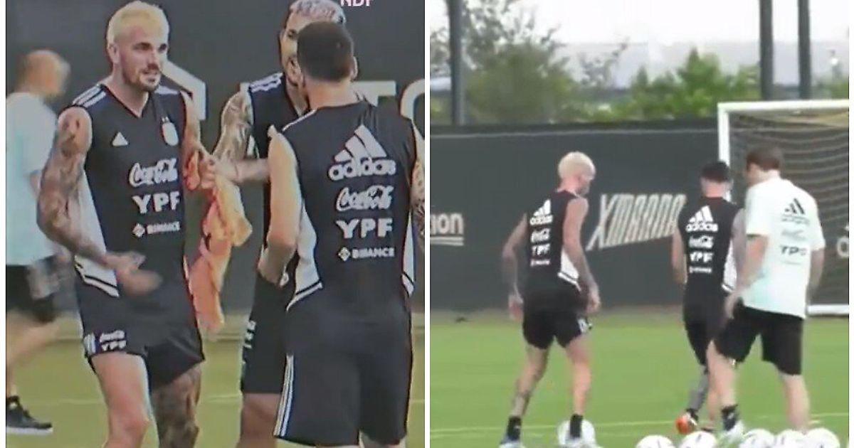Во время тренировки сборной Аргентины Месси решил подшутить над полузащитником «Атлетико» Родриго де Паулем. Тот прикол явно не оценил.