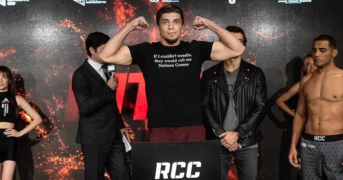 На этот раз его ждет соперник из Бразилии Нейлсон Гомес, который, в свою очередь, умеет и любит бороться. Даже на бумаге за Темирхана становится страшно, но тот решил отреагировать в стиле Хабиба Нурмагомедова и вышел на стердаун в футболке с надписью: «Если бы я не умел бороться, меня бы звали Нейлсон Гомес».