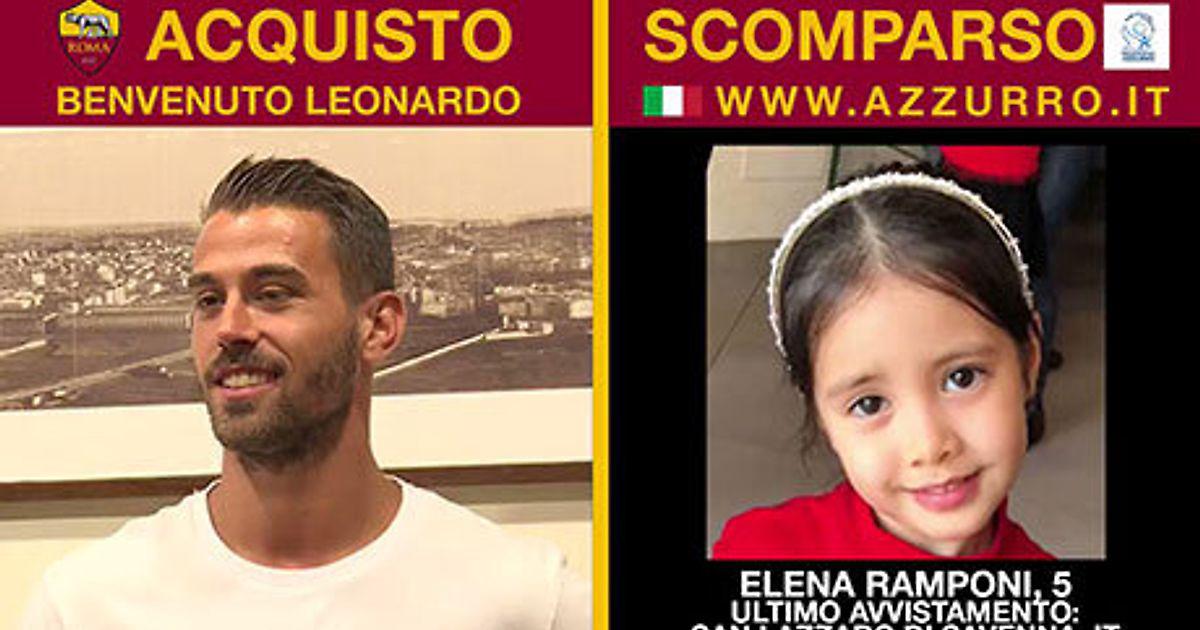 У «Ромы» более 2 млн подписчиков в твиттере, и клуб решил с их помощью реализовать важную стратегию Missing Kids, призванную не только обратить внимание на проблему, но и реально помочь тем, кто потерял близких. 30 июня 2019 года клуб при поддержке некоммерческой организации Onlus Roma Cares, тесно связанной с «Ромой», запустил в социальных сетях кампанию: фотографии новичков команды сопровождаются снимками пропавших без вести детей, координаты места, где в последний раз видели ребенка, и телефон для связи. Впервые такие данные были размещены в презентации Леонардо Спинаццолы. Рядом с фото новичка располагалась фотография 5-летней малышки Элены Рампони.