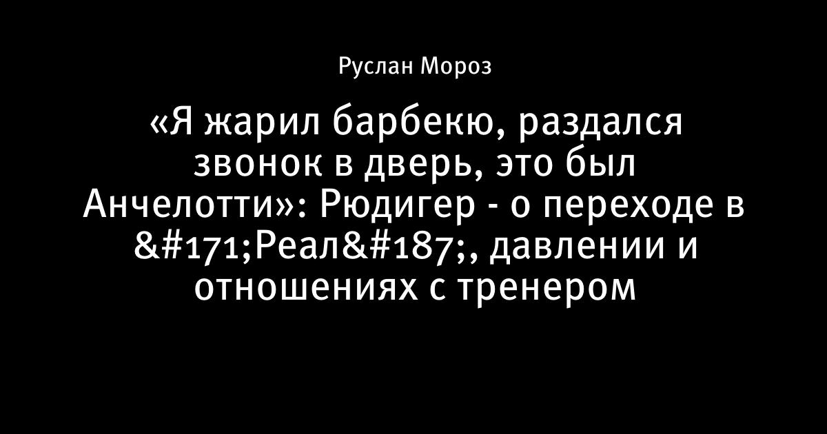 «Я жарил барбекю, раздался звонок в дверь, это был Анчелотти»: Рюдигер - о переходе в «Реал», давлении и отношениях с тренером