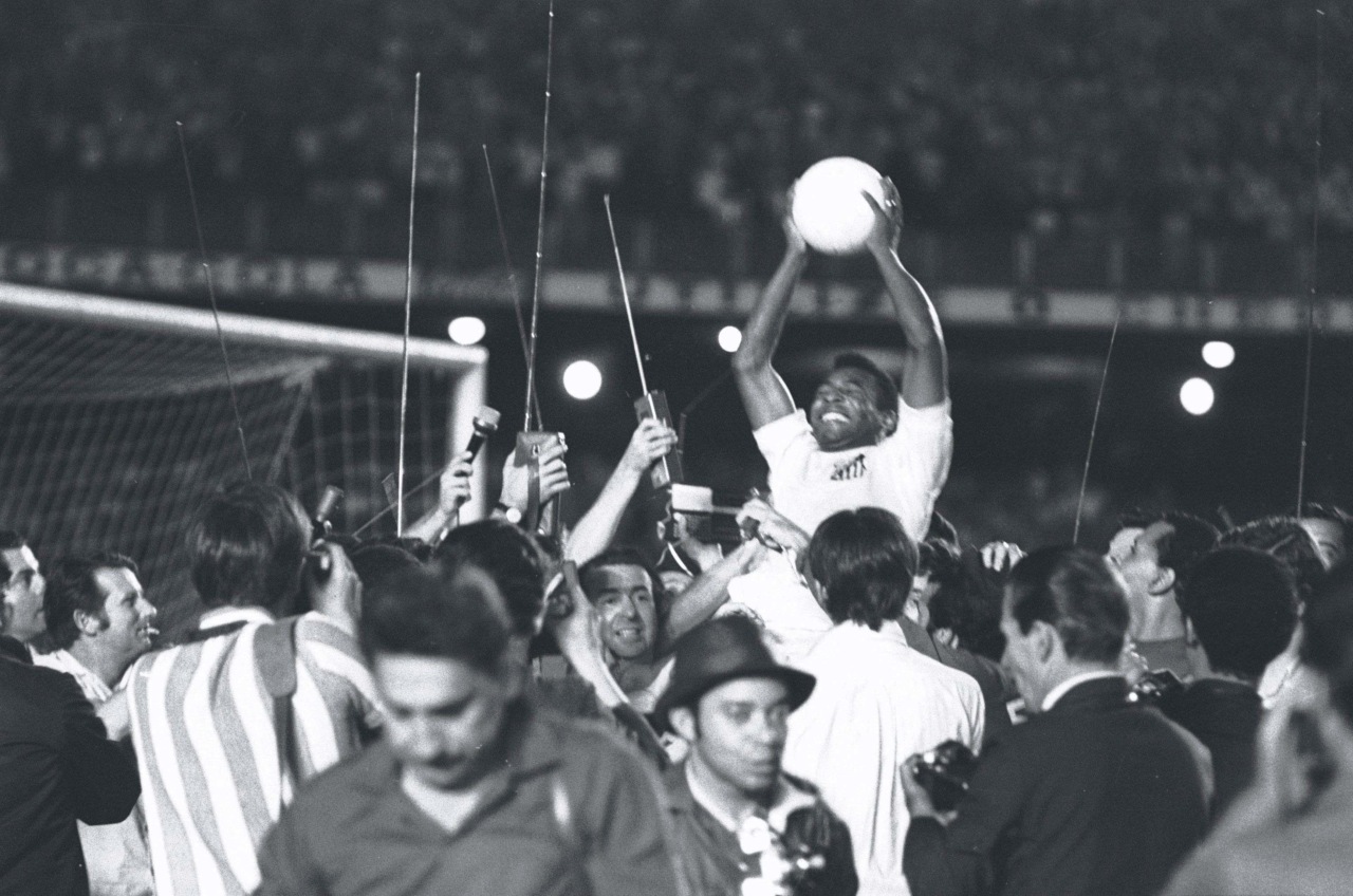 19 ноября 1969 года. "Король" футбола Пеле празднует свой 1000-й гол в карьере.