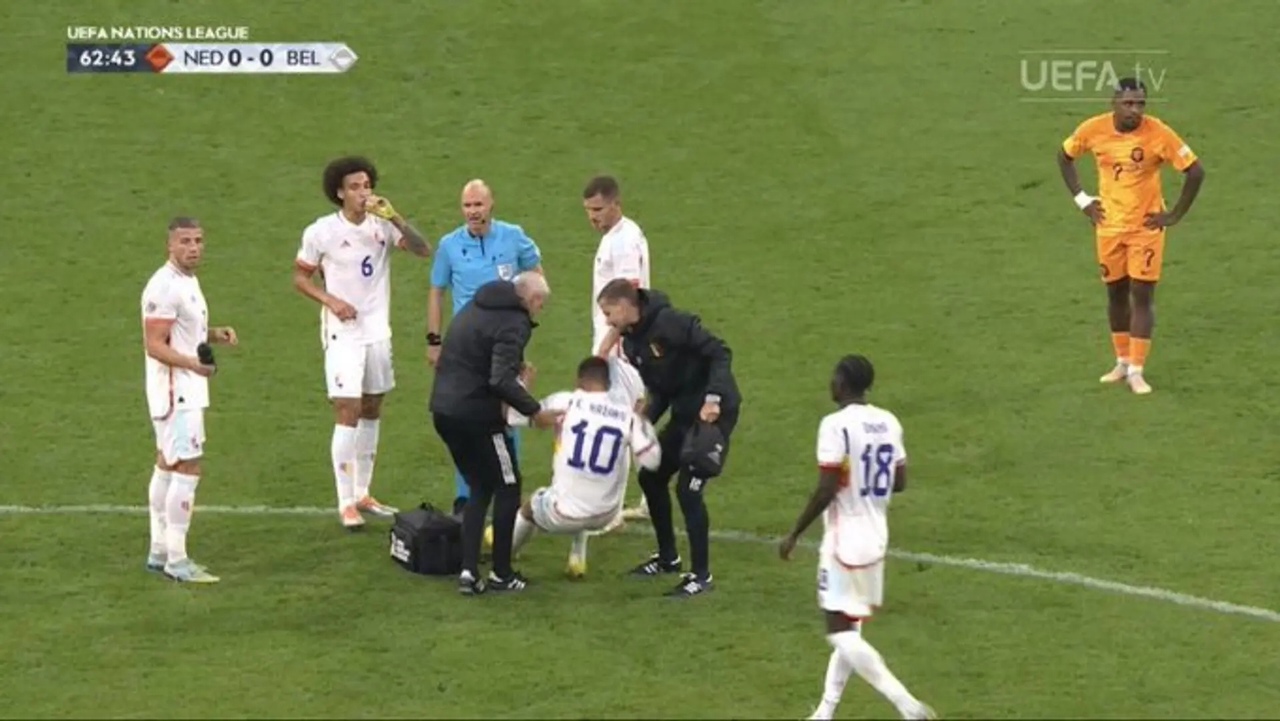 Азар получил травму колена и был заменен на 60-й минуте матча Бельгия-Нидерланды