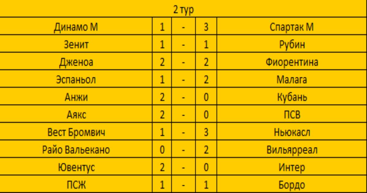 Итоговые результаты игр 2-го тура
