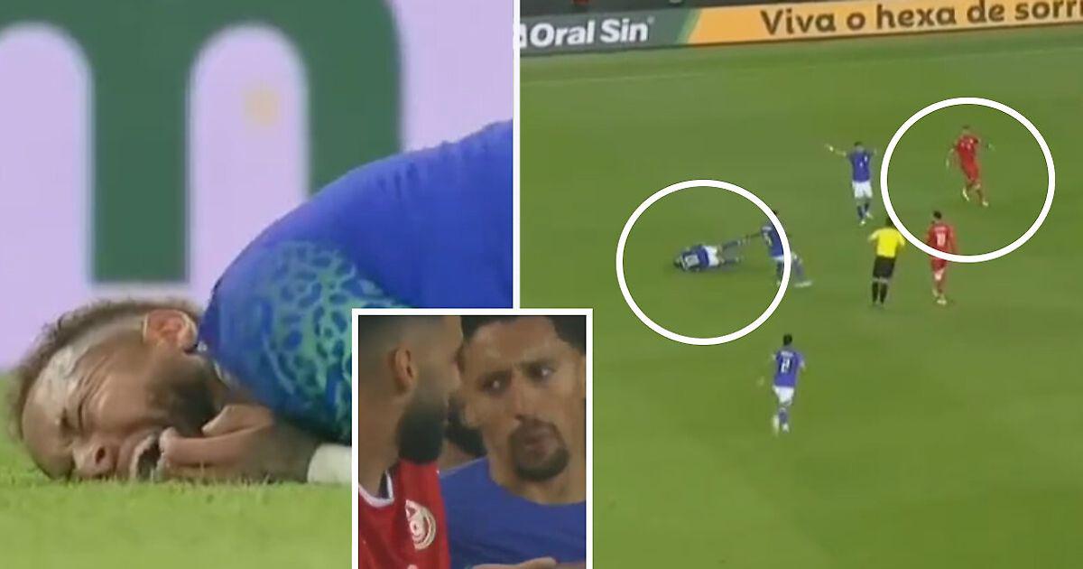 Что произошло дальше? Остальные игроки Бразилии моментально атаковали тунисца, защищая свою главную звезду.