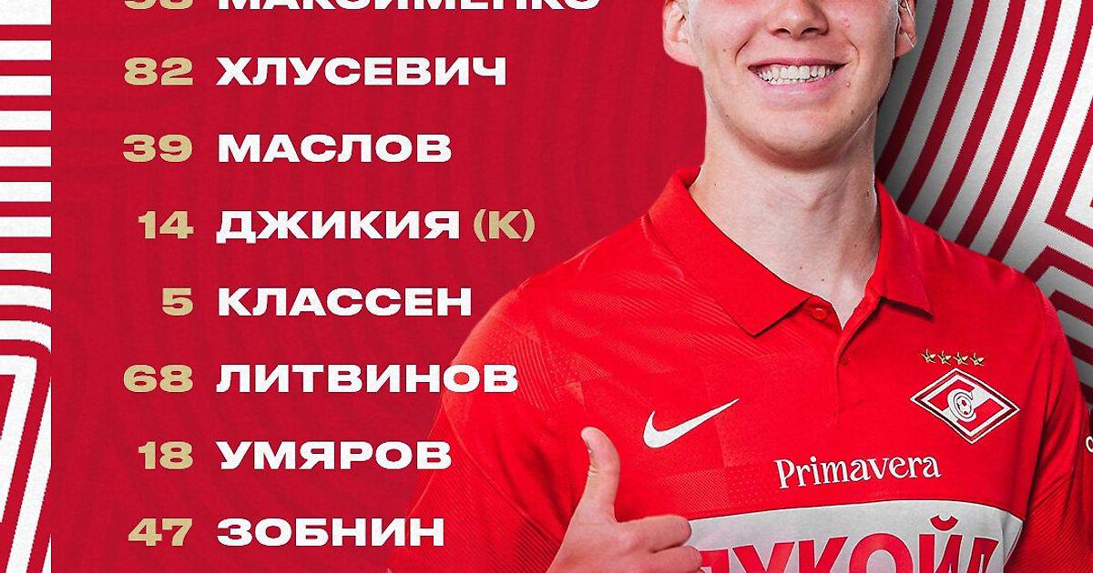 С первых минут сыграют: Максименко, Хлусевич, Маслов, Джикия (к), Классен, Умяров, Литвинов, Зобнин, Игнатов, Промес, Соболев.