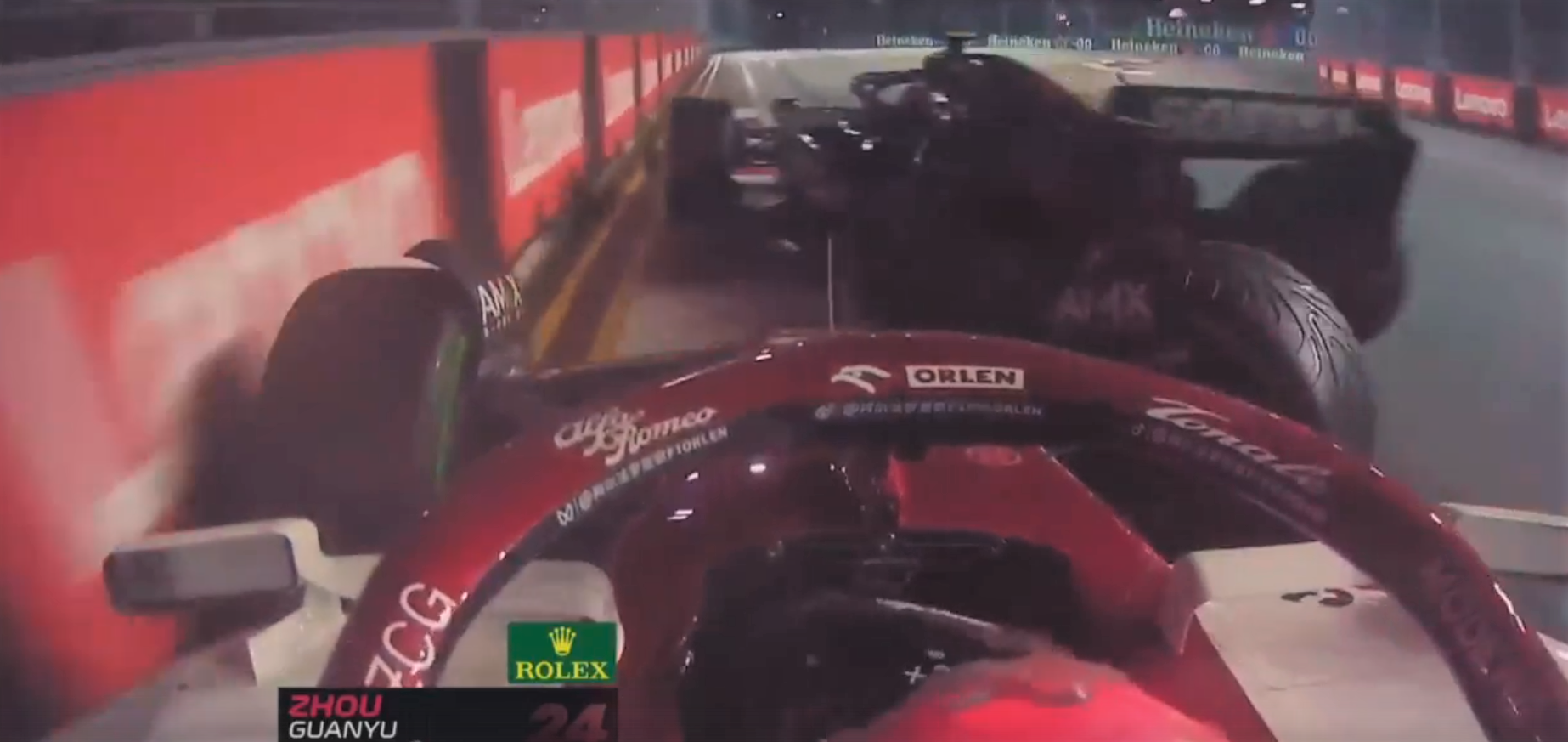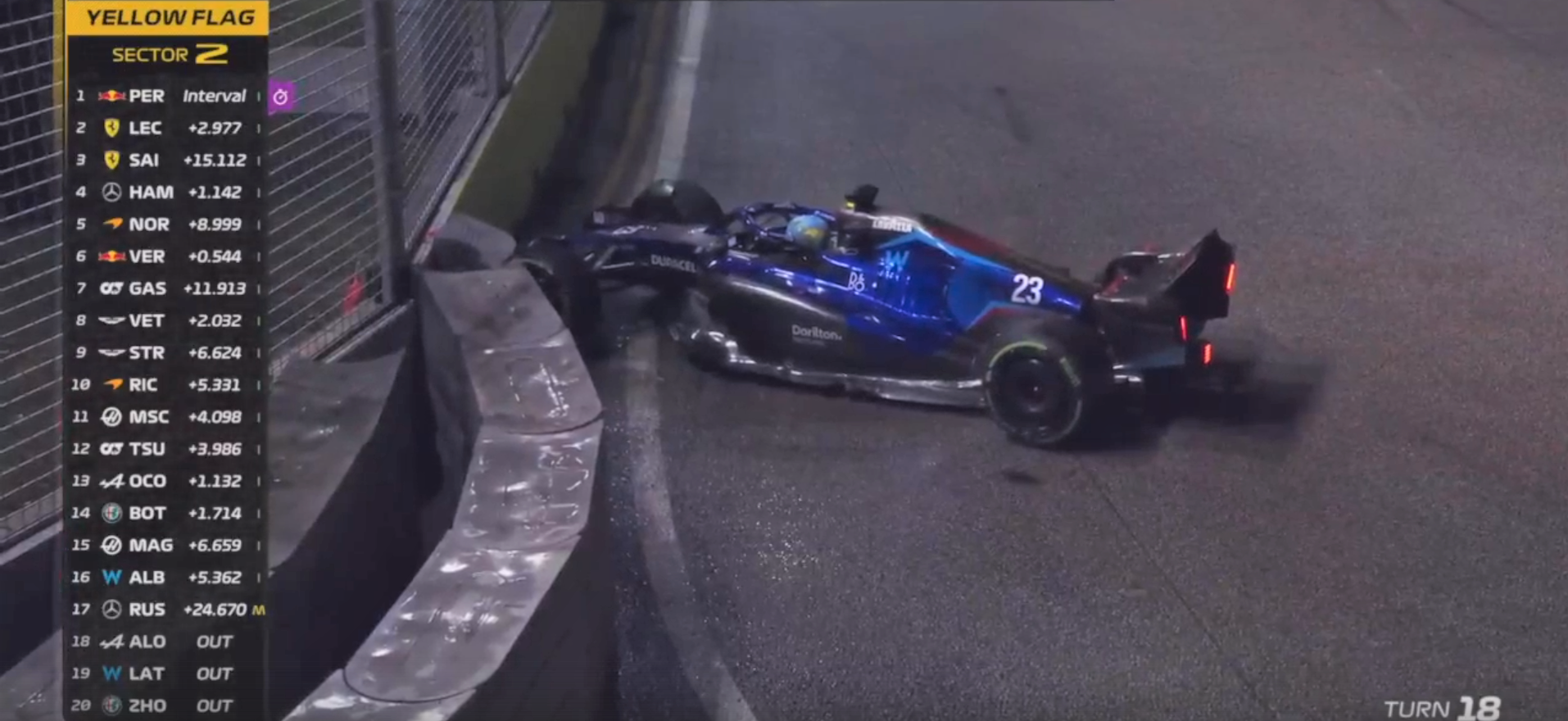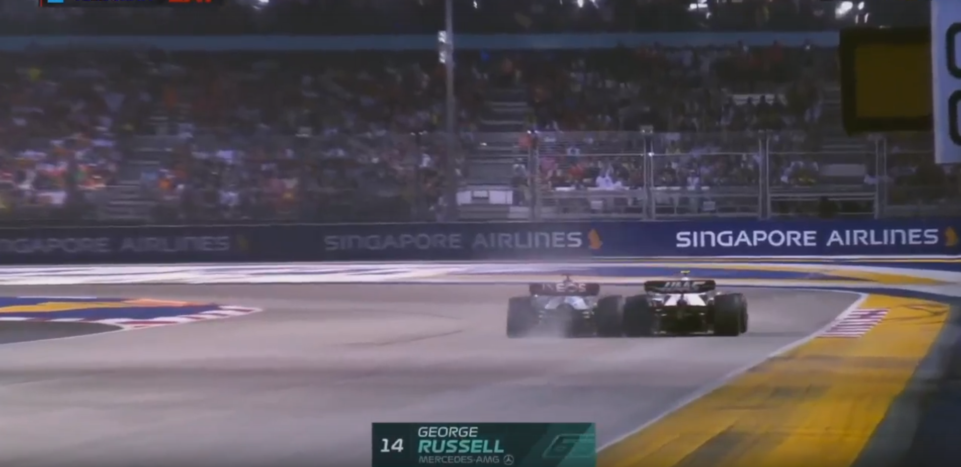 Сход произошел по техническим проблемам. Из-за этого появился виртуальный пейс-кар. На этом моменте стратеги "Мерседеса" решили всех удивить и переобуть Джорджа Рассела с промежутков на медиум. Видимо они решили что самое время показывать лучшие круги на сликах, но не тут та было. Вместо того, чтобы отыгрывать время и лететь на всех порах он выживал на этих шинах. Зрители в его исполнение могли наблюдать довольно красивый дрифт.