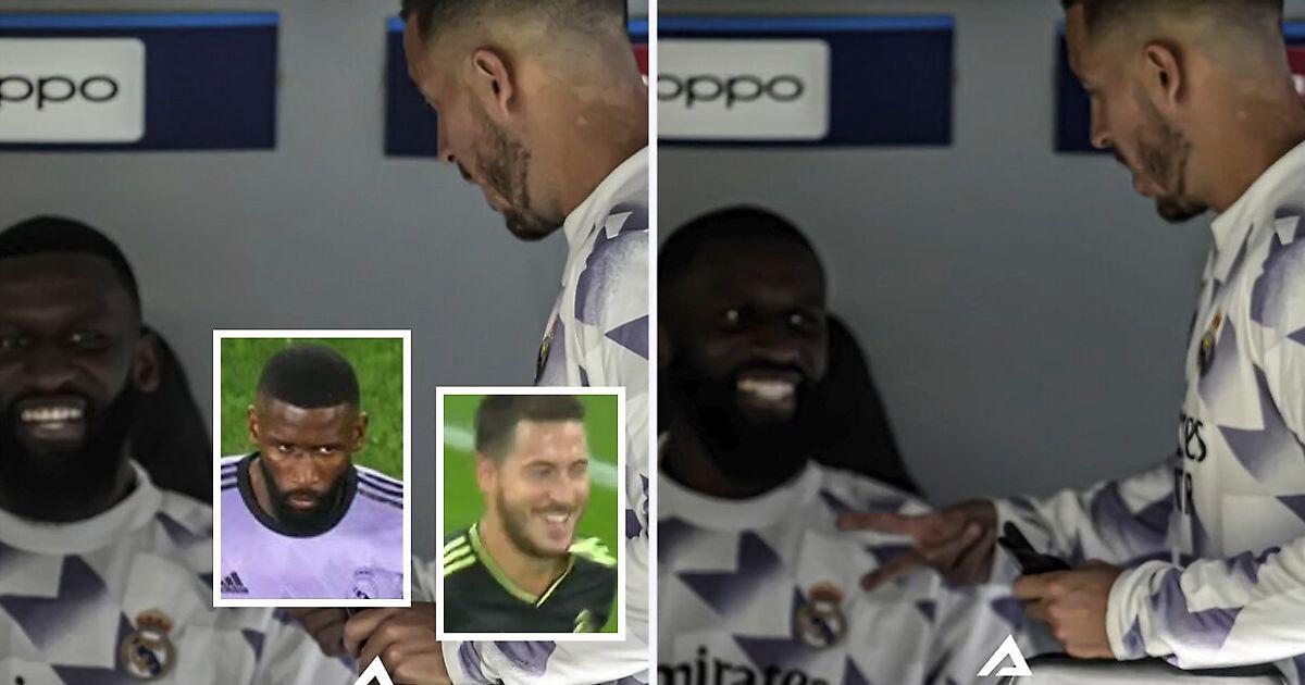 Драма в четырех кадрах: Рюдигер занял место Азара на скамейке запасных. Они сыграли в «камень-ножницы-бумага», чтобы выяснить, кто будет сидеть в кресле