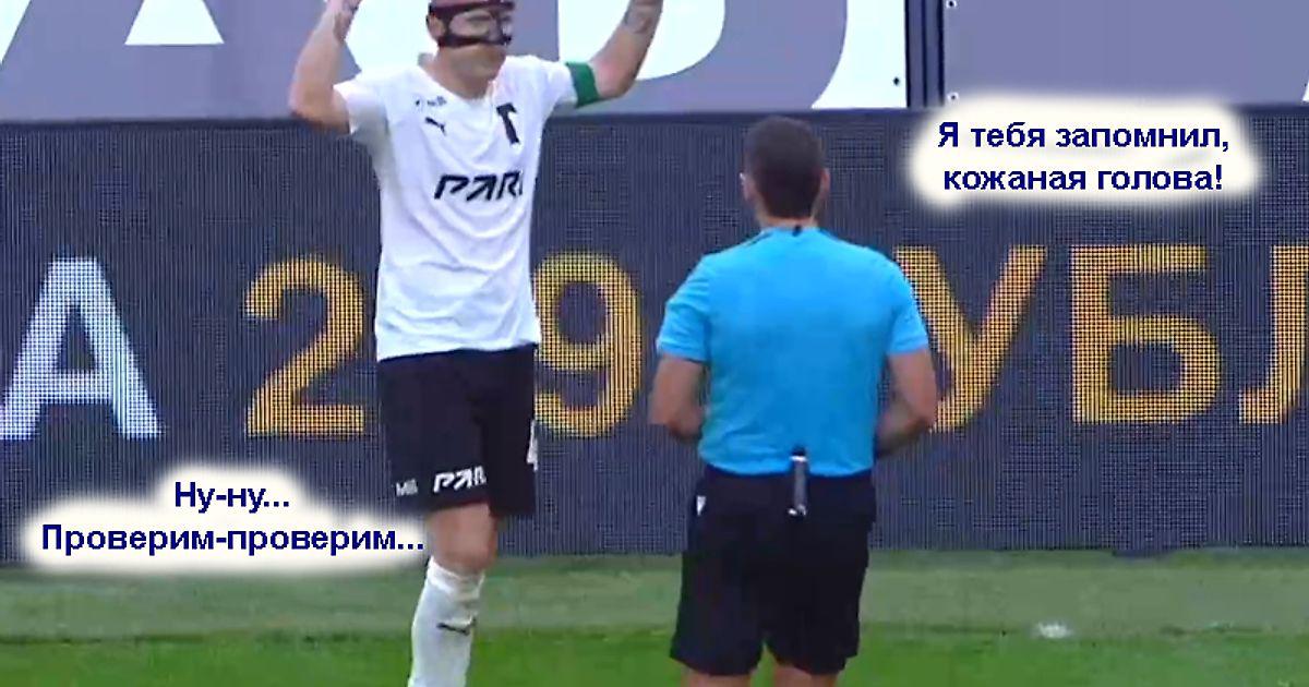 Матч был определённо не сложным для работы арбитра, хоть и носил статус «дерби». В отсутствие высокой интенсивности игры, было достаточно несложной задачей его не испортить, и Евгений Кукуляк из Калуги вполне с ней справился. У чёрно-белых, в принципе, могут возникнуть к нему вполне справедливые претензии по поводу двух, показанных им жёлтых карточек, но на результат игры они, безусловно, никак повлиять не могли. Можно только гадать, справился ли бы арбитр с большей степенью накала в игре, если бы таковая возникла, но для довольно спокойного и размеренного течения матча текущей его квалификации вполне хватило. Остановки игры — 26 (12 + 14), Ошибки — 3:2. Результат — 78,64.