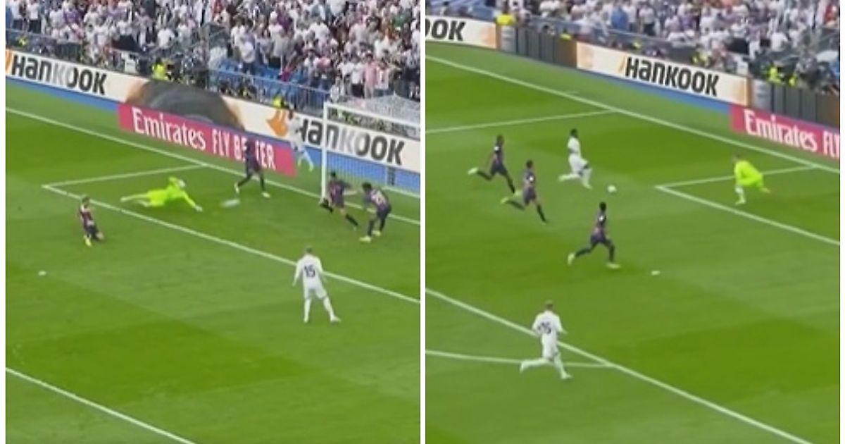 НА 12-й минуте Карим Бензема забил гол в ворота «Барсы». Тони Кроос сделал шикарный длинный пас на Винисиуса, который попытался пробить, но тер Стеген бросился навстречу мячу и успел остановить его рукой и коленом. Но тот отрикошетил и отправился прямо в ноги Бензема, который без раздумий отправил мяч в сетку.