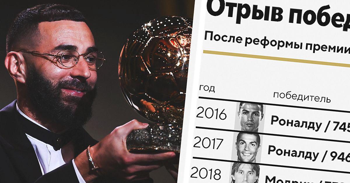 Насколько убедителен «Золотой мяч» Бензема? Считаем отрыв и сравниваем с парой Месси-Роналду