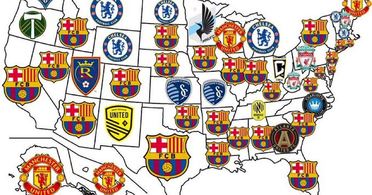 За американские клубы больше всего болеют в 11 штатах. «Барселоне» отдают предпочтение 26 штатов. 6 за «Челси». 4 за «МЮ» и 3 за «Ливерпуль».