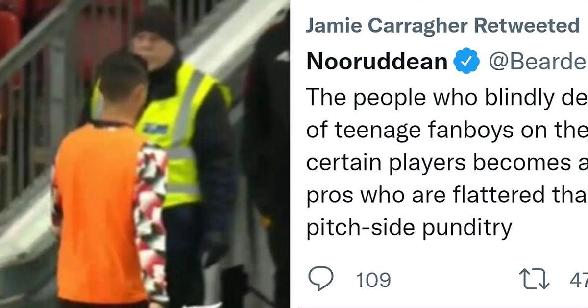Один пользователь Twitter назвал тех, кто защищает 37-летнего футболиста «подростковыми фанатами в Интернете», и это мнение ретвитнул Джейми Каррагер.