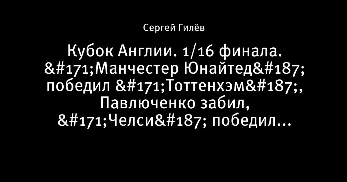 Кубок Англии. 1/16 финала. «Манчестер Юнайтед» победил «Тоттенхэм», Павлюченко забил, «Челси» победил «Ипсвич»