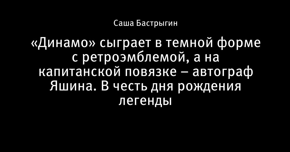 «Динамо» сыграет в темной форме с ретроэмблемой, а на капитанской повязке – автограф Яшина. В честь дня рождения легенды