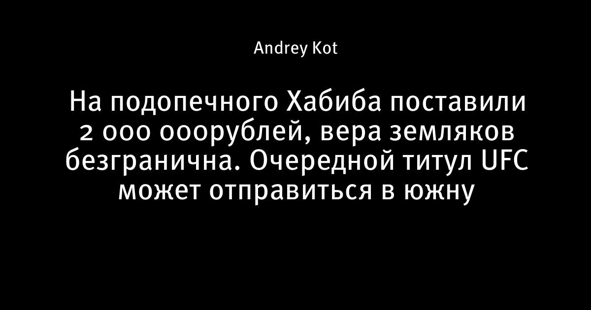 На подопечного Хабиба поставили 2 000 000рублей, вера земляков безгранична. Очередной титул UFC может отправиться в южну