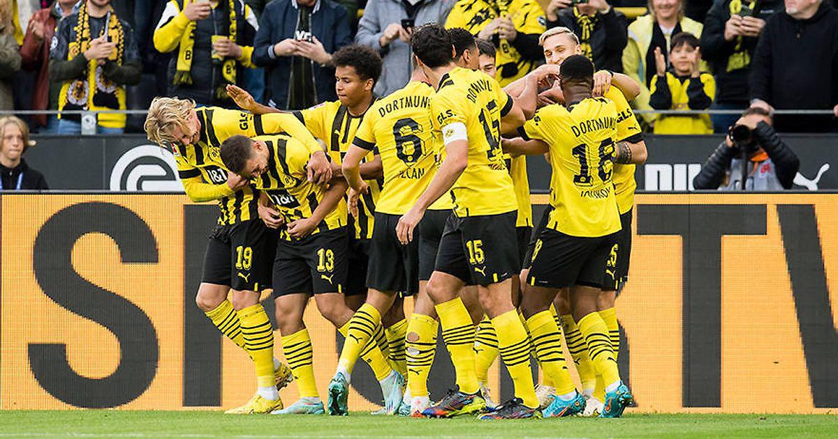 Главный тренер дортмундской «Боруссии» Эдин Терзич не стал мудрить и принял решение играть по схеме 4–2–3–1, в которой, из-за отсутствия Менье и из-за неготового играть полный матч Вольфа, Зюле занял позицию правого защитника, а Беллингем действовал гораздо агрессивнее и ближе к атаке, чем его напарник по опорной зоне Озджан. Единственный нападающий Мукоко часто возвращался в полузащиту и предлагал себя в качестве еще одного адресата для передачи: Грегор Кобель, Рафаэль Геррейро, Нико Шлоттербек, Матс Хуммельс, Никлас Зюле, Салих Озджан, Джуд Беллингем, Юлиан Брандт, Джованни Рейна, Карим Адейеми и Юссуфа Мукоко.