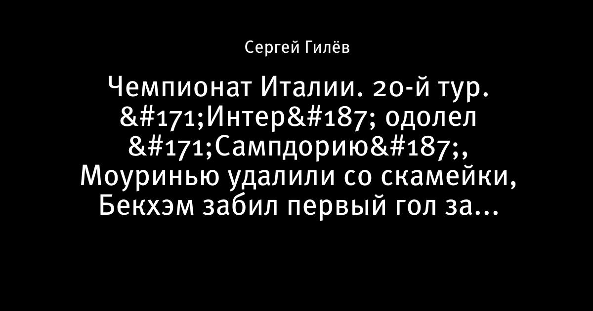 Чемпионат Италии. 20-й тур. «Интер» одолел «Сампдорию», Моуринью удалили со скамейки, Бекхэм забил первый гол за «Милан»