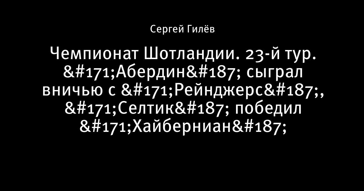 Чемпионат Шотландии. 23-й тур. «Абердин» сыграл вничью с «Рейнджерс», «Селтик» победил «Хайберниан»