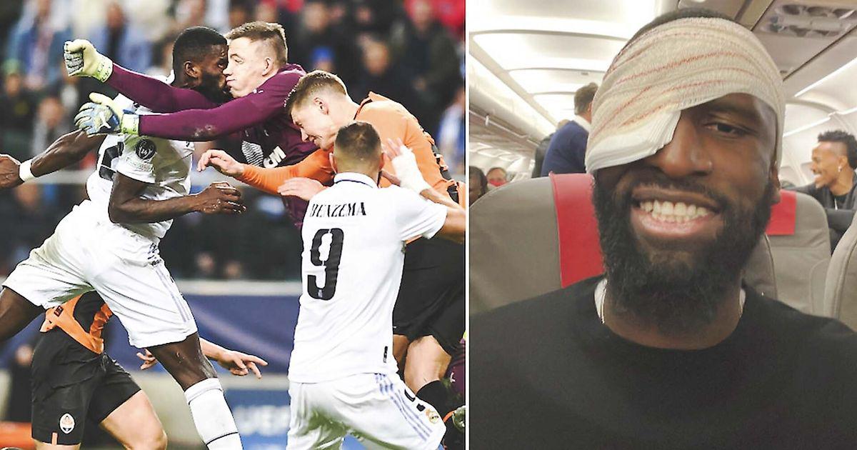 После травмы головы, полученной в матче с донецким «Шахтером», Антонио Рюдигеру наложили 20 швов. У защитника теперь есть шрам над левой бровью, а его глаз все еще кровоточит.