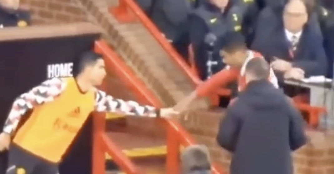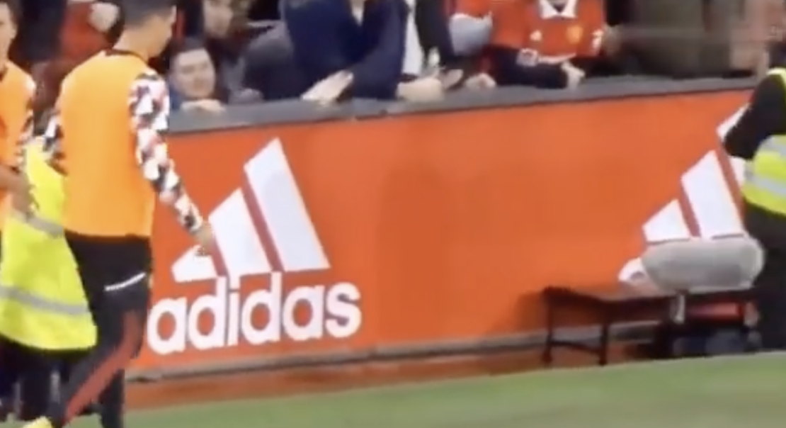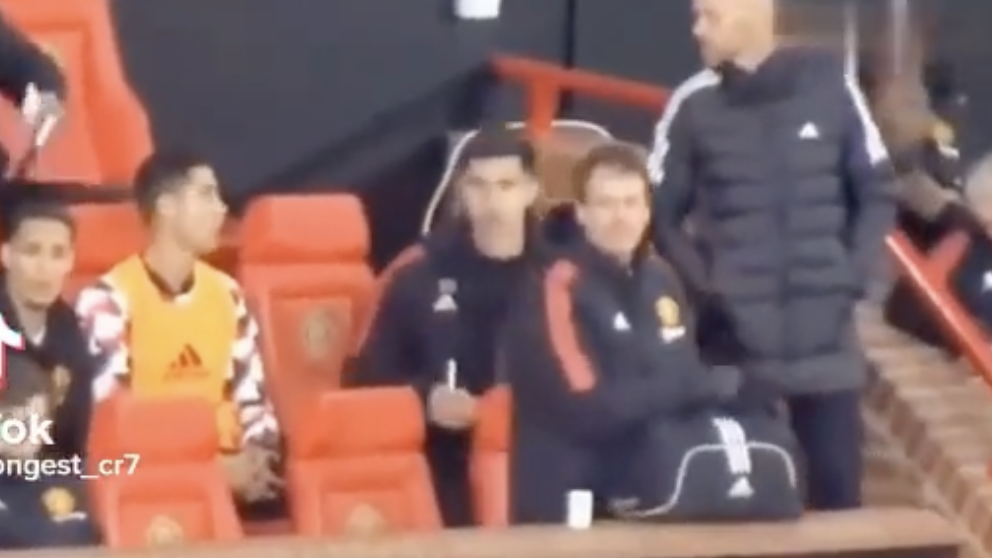 В сети появилось новое видео с конкретным моментом, когда Криштиану Роналду отказался выходить на замену в матче с «Тоттенхэмом». В ролике видно, как главный тренер «МЮ» Эрик тен Хаг обращается к португальцу – а тот сначала качает головой, а потом пальцем показывает, что не выйдет на поле.
