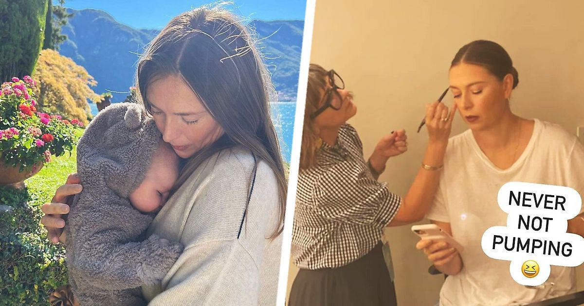 35-летняя Шарапова очевидно получает от материнства удовольствие и показывает его разные стороны, будь то восстановление физической формы, к которому приступила через две недели после родов, чтение сыну Маяковского или превратности грудного кормления.