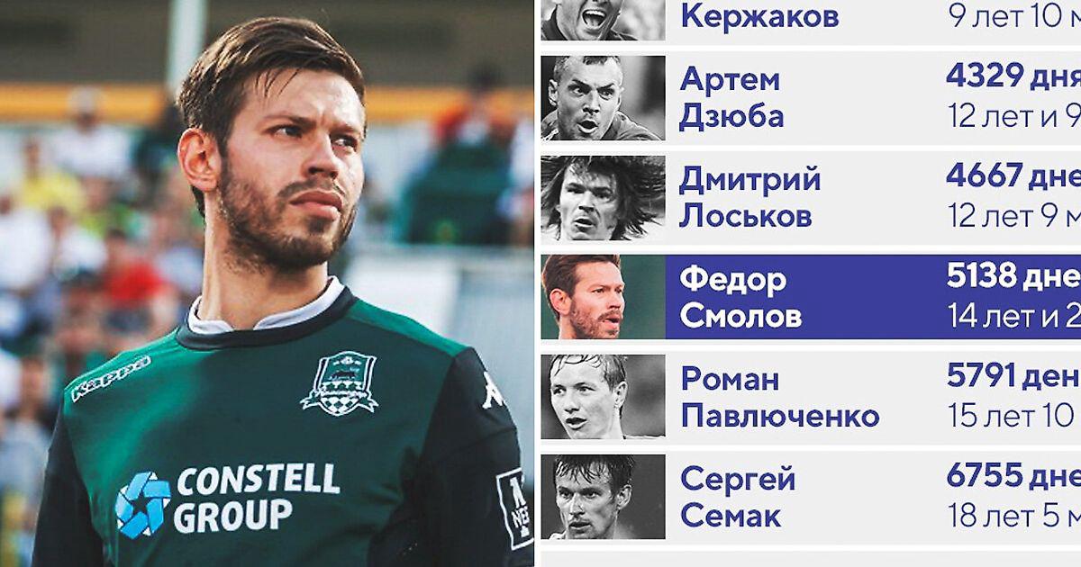 С момента дебюта в РПЛ в 2008-м Федор провел вне лиги год – по полсезона в «Фейеноорде» (сезон-2010/11) и «Сельте» (сезон-2019/20). Даже с учетом этого, 14 лет – все равно много. Главные паузы была в начале карьеры: первый и второй голы разделили почти два года, третий и четвертый – почти три.