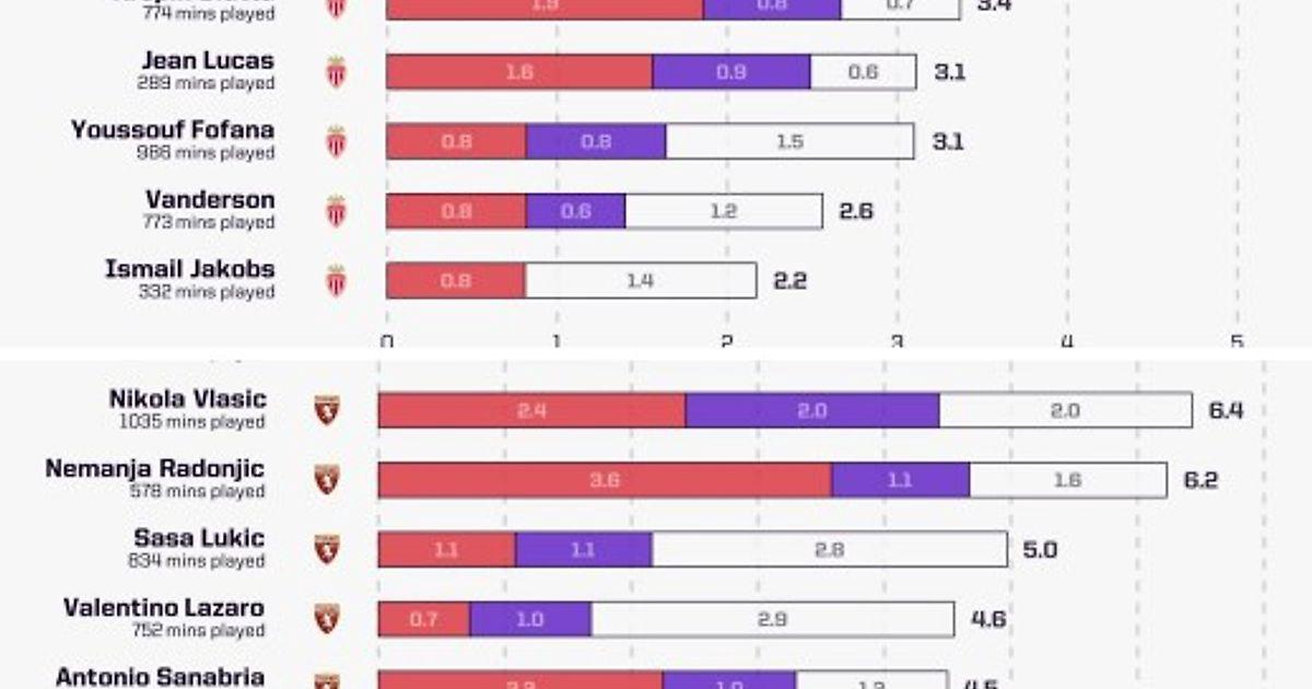 Головин в среднем участвует в пяти ударах «Монако» с игры в пересчете на 90 минут в Лиге 1 (сумма ударов, передач под удар и участий в комбинациях с ударами из 10+ передач) - лучший результат в команде.