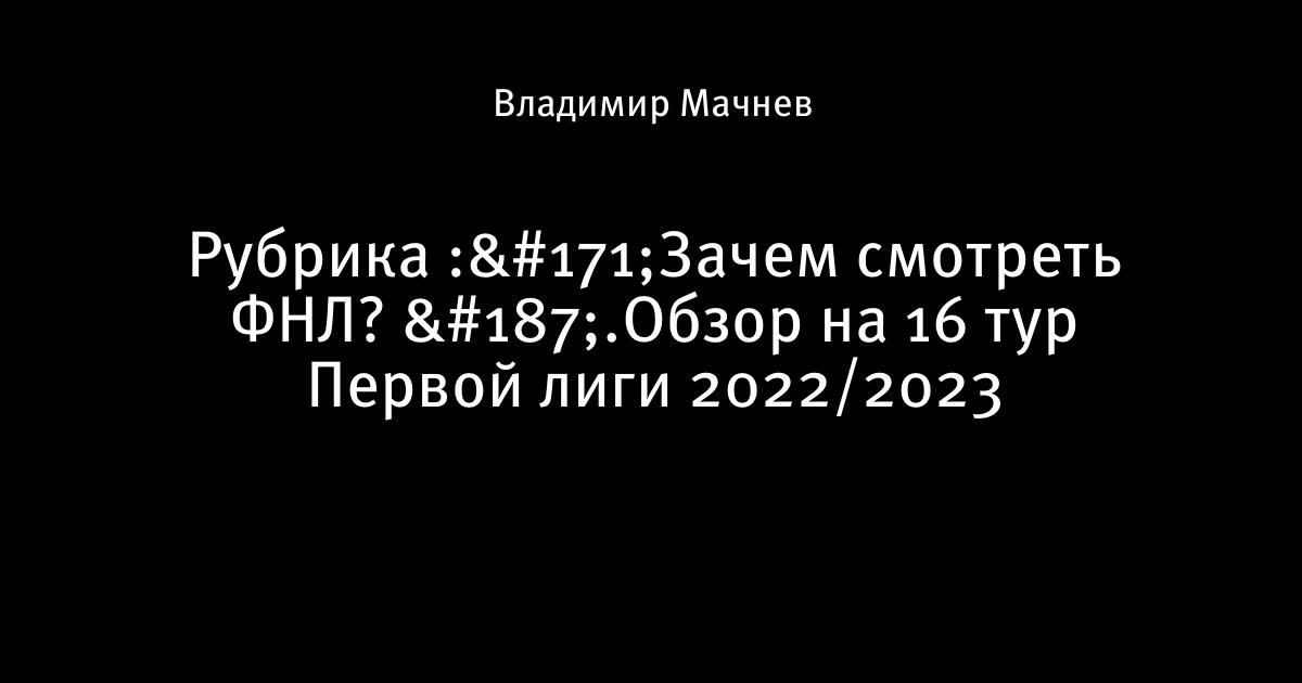Рубрика :«Зачем смотреть ФНЛ? ».Обзор на 16 тур Первой лиги 2022/2023