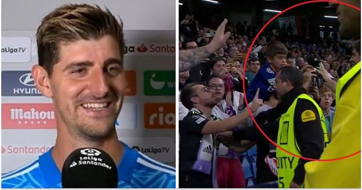 Жест Тибо попал на камеры, интересно, что в этот момент вратарь выглядит даже счастливее, чем фанат, которому так повезло.