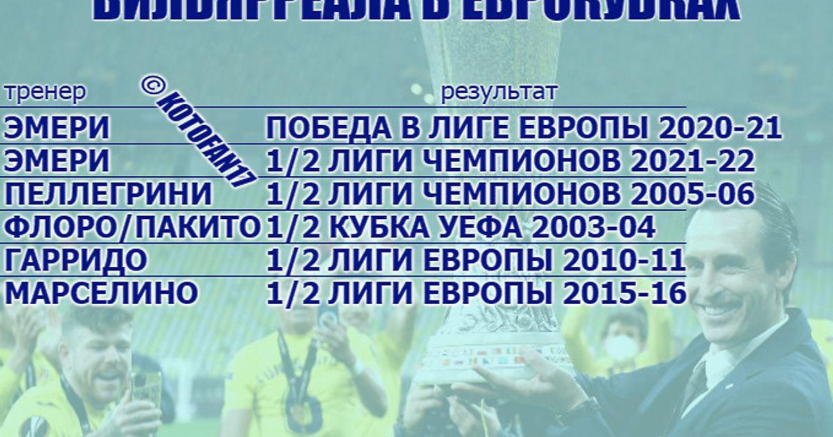 Близко к триумфу в большом еврокубке Подводники подбирались уже давно: в сезонах 2003-04, 2010-11 и 2015-16 Вильярреал доходил до 1/2 Лиги Европы/Кубка УЕФА, а в сезоне 2005-06 – до 1/2 Лиги чемпионов. Но каждый раз чего-то не хватало.