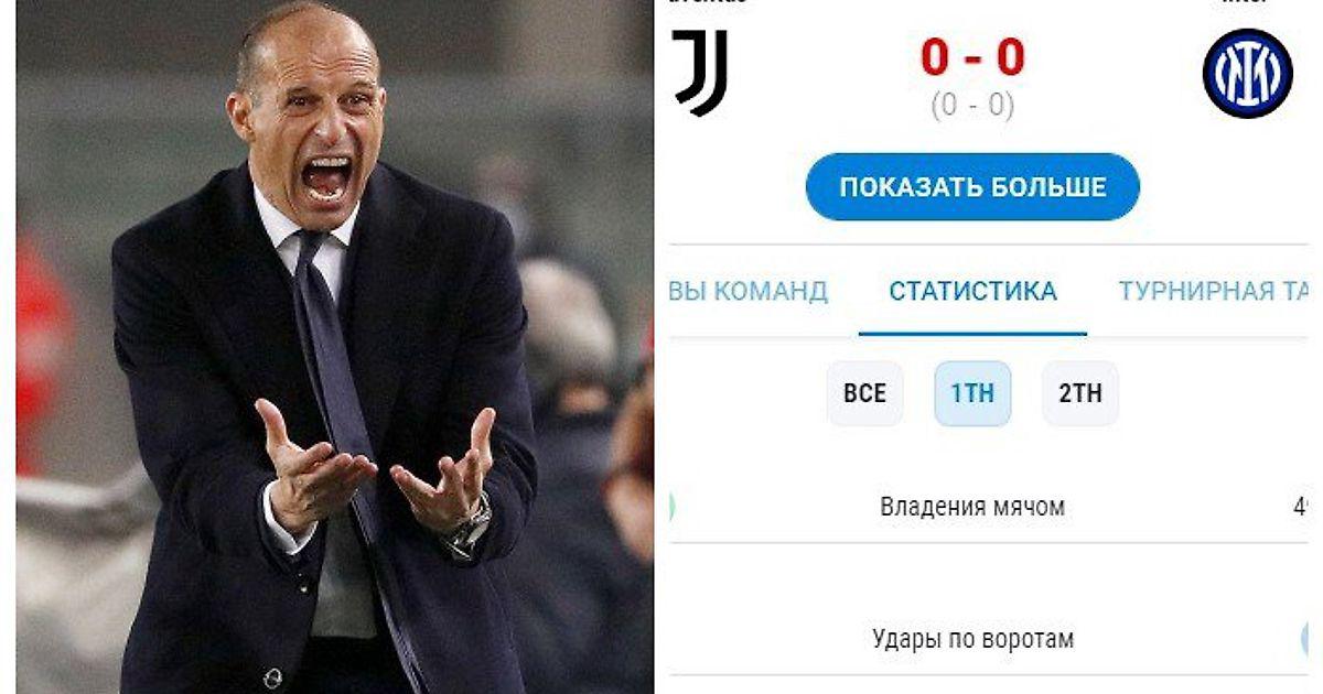 «Ювентус» впервые за 18 лет не нанес удар в створ ворот «Интера» в первом тайме
