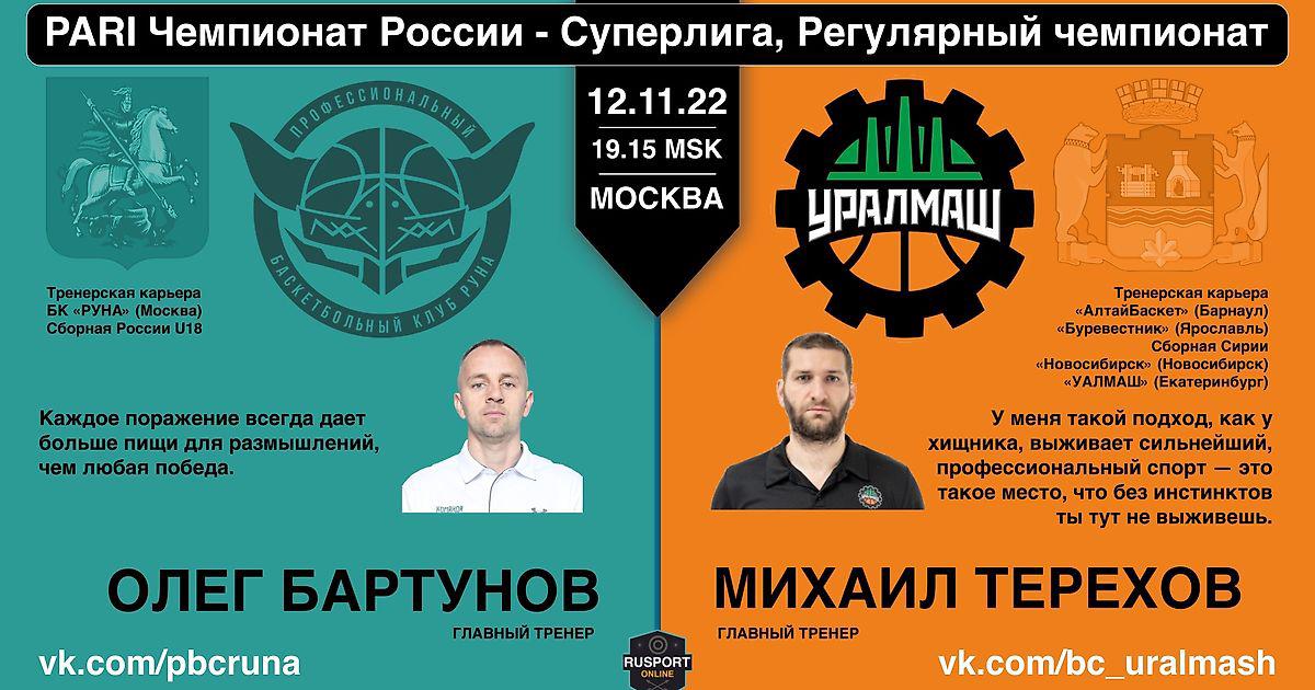 Противостояние Бартунова и Терехова в матче РУНА против УРАЛМАШ реально интересно. Это новое поколение российских тренеров. Они придерживаются разных идеологий, имеют очень интересную историю игроков и тренеров. И в субботу каждому надо обязательно выигрывать. Кто кого?
