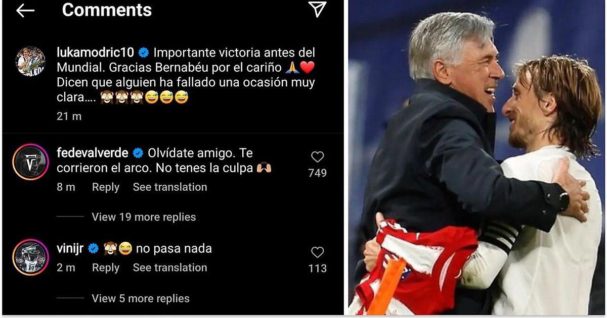 Лука иронично признал ошибку в социальных сетях, опубликовав пост с подписью: «Важная победа перед Мундиалем. Спасибо «Бернабеу» за поддержку. Говорят, кто-то упустил отличный голевой момент…»