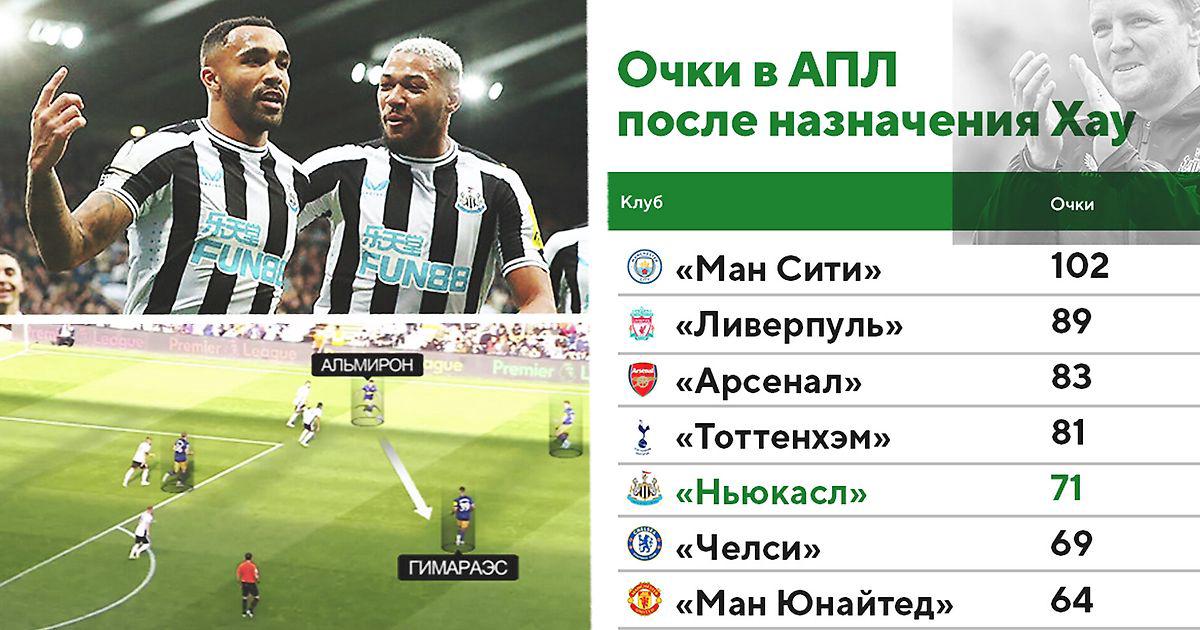 Спустя год после покупки клуба консорциумом из Саудовской Аравии «Ньюкасл» уже рвется в Лигу чемпионов. Команда Эдди Хау идет третьей в АПЛ и уступает лишь «Арсеналу» и «Ман Сити» – команде, которая установила личный рекорд по очкам на старте сезона, и действующему чемпиону. На паузу, связанную с чемпионатом мира, «Ньюкасл» при любых обстоятельствах уйдет в четверке.