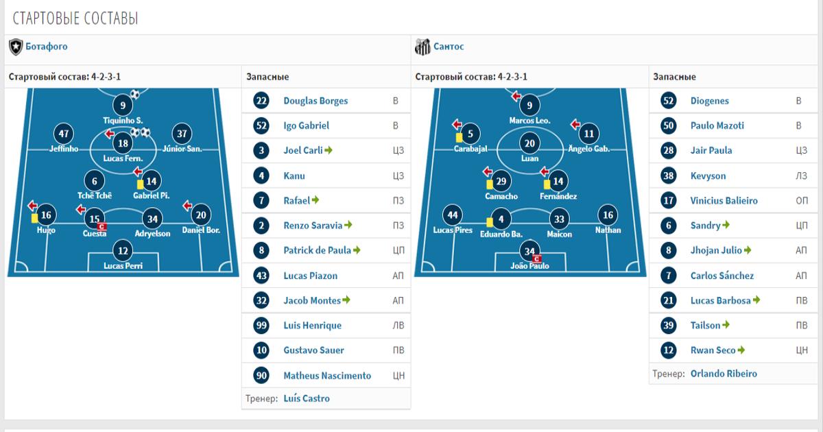 Лукас Фернандес играет центрального атакующего игрока в системе 4-2-3-1. В позиционной игре, при процессе передвижения, открывается в полуфланге/фланге как на левом, так и на правом из последнего выполнил два результативных удара. В этом матче, по игре 1 в 1, был лучше всех, с натяжкой сюда можно записать еще Анджело правый вингер Сантоса, который мог бы сравнится с Лукасом в ловкости и быстроте движения при обыгрыше. Примеры: с левого полуфланга, уход от соперника сопровождался, смещением в центр внешней стороной стопы и попытка отдать проникающую в штрафную После не продолжительного ведения по правому полуфлангу, резко внутренней стороной стопы, под углом 90 градусов обыгрывает, и по катящему мячу выполняет удар, левой ногой в дальний угол ворот.