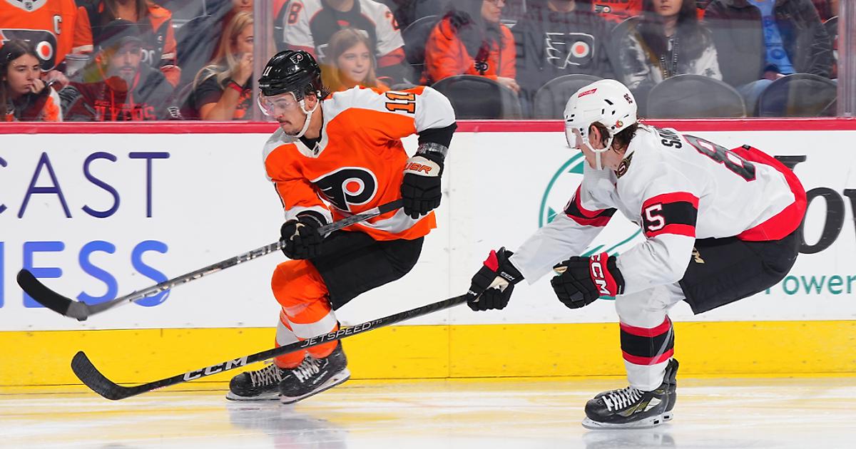"Филадельфия Флайерс"-"Оттава Сенаторз" 1:4.Брэди Ткачук и Клод Жиру отдали по 3 результативные передачи,Алекс ДеБринкат забросил 2 шайбы,Тим Штютцле набрал 2 очка (1+1),Кэм Тальбо отразил 37 бросков.В первом периоде Трэвис Конечны подрался с Джэйкобом Бернар-Докером,а затем Тони ДеАнджело подрался с Марком Костеличем."Сенаторы" прервали серию из 7 поражений подряд.