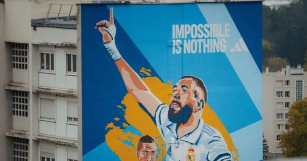 Adidas создал огромное граффити с Бензема на стене дома. В его родном городе!