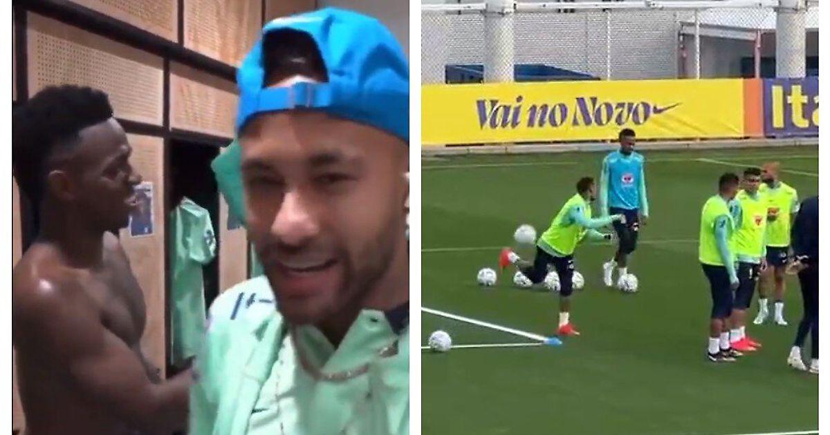 Неймар счастлив в сборной: тепло обнимается с Винисиусом и устраивает на тренировке шоу с Дани Алвесом