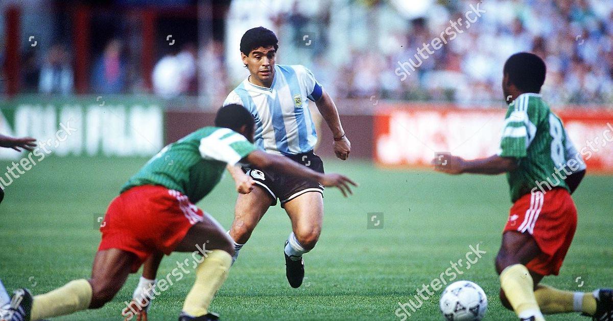 ЧМ-1990. Стартовый матч, Аргентина - Камерун (0:1). Король Футбола - Д.МАРАДОНА в окружении Молодых и Безжалостных "Африканских Львов", сразу жаждующих крови, слегка подсевших, и уже слегка надломленных, Чемпионов Мира...