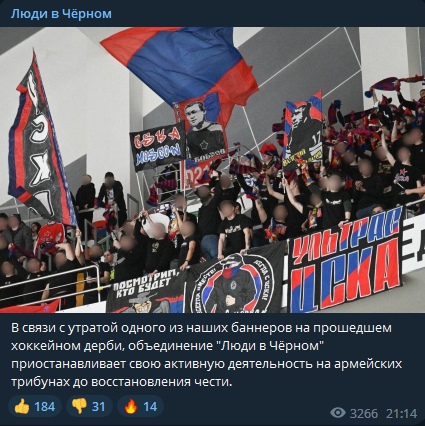 «Люди в Чёрном» приостанавливает свою активную деятельность на армейских трибунах