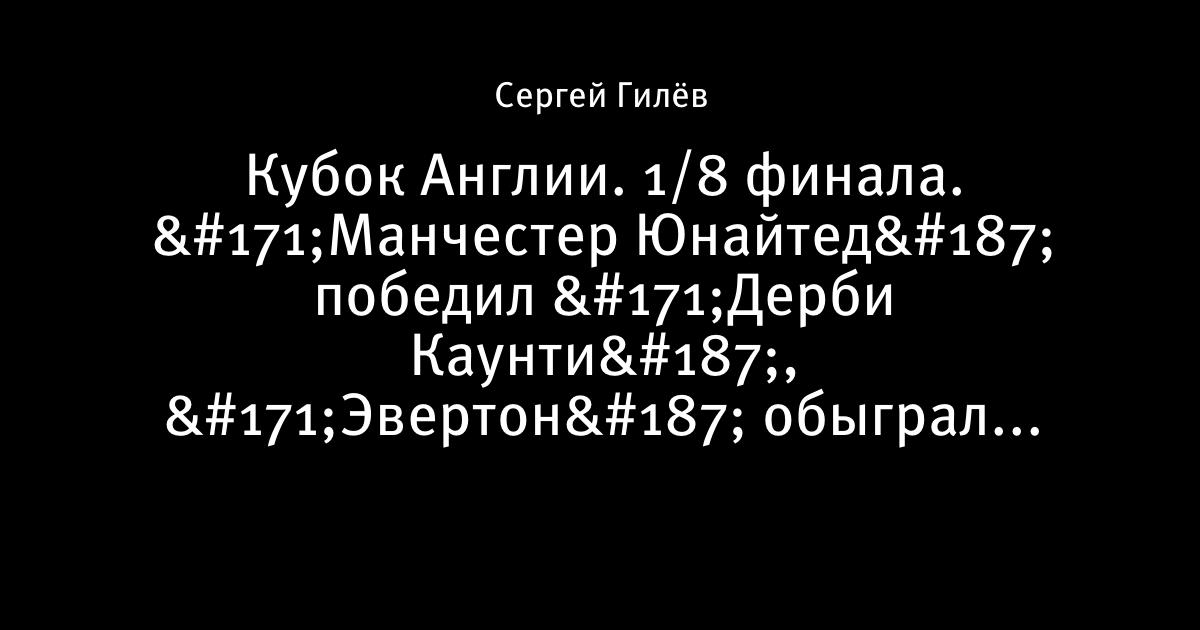 Кубок Англии. 1/8 финала. «Манчестер Юнайтед» победил «Дерби Каунти», «Эвертон» обыграл «Астон Виллу»