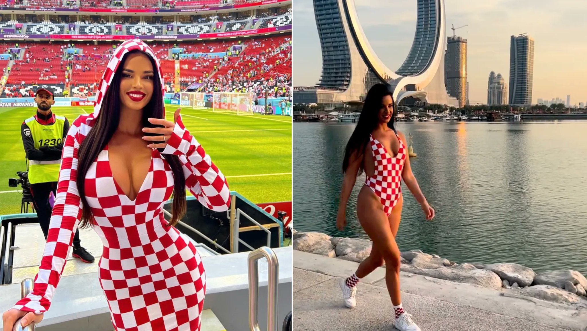 Ивана приехала на чемпионат мира, чтобы поддержать Хорватию в матче с Марокко. На матч она пришла в довольно ярком платье в цветах сборной, а также прогулялась по Дохе в таком же купальнике.