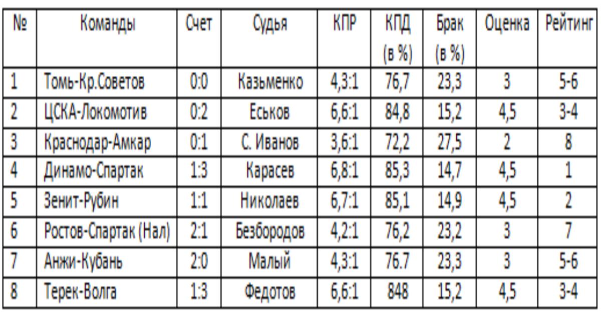 Проводится простой арифметический расчет, напрямую связанный с эффективностью работы судейского Департамента 32 игры: 9 ошибок= 3,55, т.е. каждая 4 игра-завал. Показатели хуже, чем при руководстве справедливо критикуемых руководителей Сергея Зуева и Андрея Будогосского. Не хотелось бы упрекать, но и нельзя не сказать о действиях Президента РФС Сергея Фурсенко, поскольку он вынужден был искать им замену и нашел ее в лице иностранных итало-испанских специалистах. Однако его выбор и на этот раз оказался из категории неудачных. Что касается тандема иностранцев, то им не мешало бы напомнить слова песни из времен Леонида Утесова: «А в остальном, прекрасная Маркиза, все хорошо, все хорошо». Хорошо им, имеющим хорошо оплачиваемые РФС контракты, но не очень комфортно чувствует себя тренерский состав премьер-лиги и первого дивизиона, а также спортивная общественность, от которых не ускользают изъяны в судействе, хотя старанием и усердием отдельных экспертов судейские «ляпы» хитро маскируются.