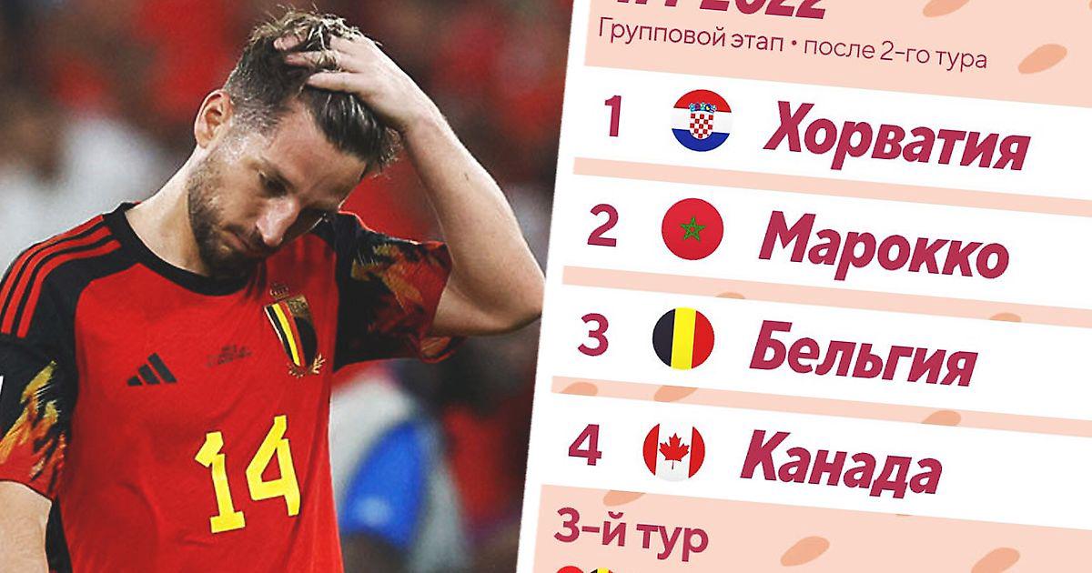 В группе F завершился второй тур: Бельгия неожиданно проиграла Марокко (0:2), а Хорватия разгромила Канаду (4:1).