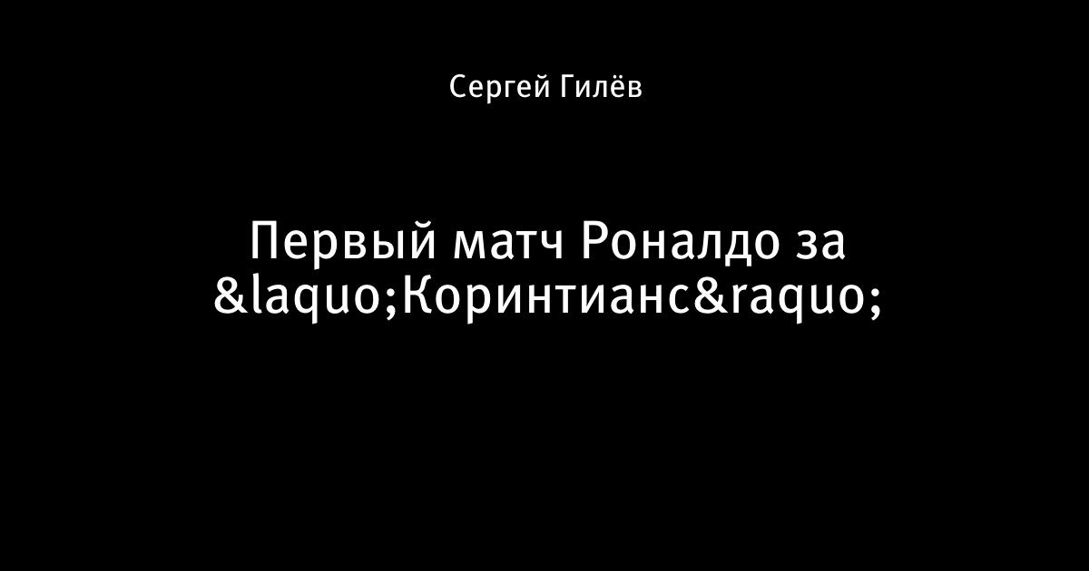 5 марта 2009, 18:59 Первый матч Роналдо за «Коринтианс» Дебют вышел скучный, только зря микрофоном в глаз ударили. Автор Сергей Гилёв Этот пост опубликован в блоге на Трибуне Sports.ru. Присоединяйтесь к крупнейшему сообществу спортивных болельщиков! Другие посты блога Разборки в олимпийском Париже