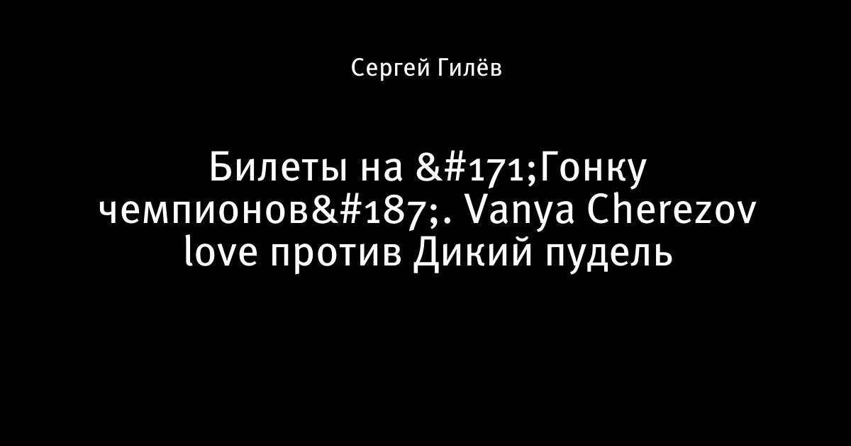 Билеты на «Гонку чемпионов». Vanya Cherezov love против Дикий пудель